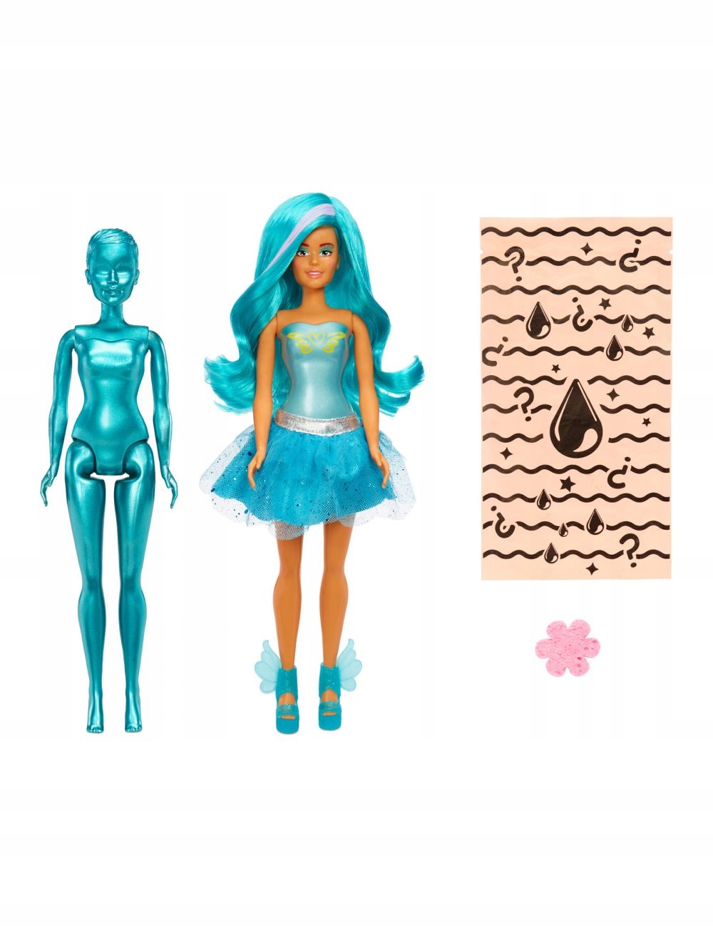 ЗАНУРТЕ ЇЇ У ВОДУ: розгорніть ляльку, вкриту блиском, з ніг до голови. Занурте ляльку в крижану ванну, щоб дізнатися, яка у вас чарівна фея! Витріть блискітки м’якою губкою, що входить у комплект.