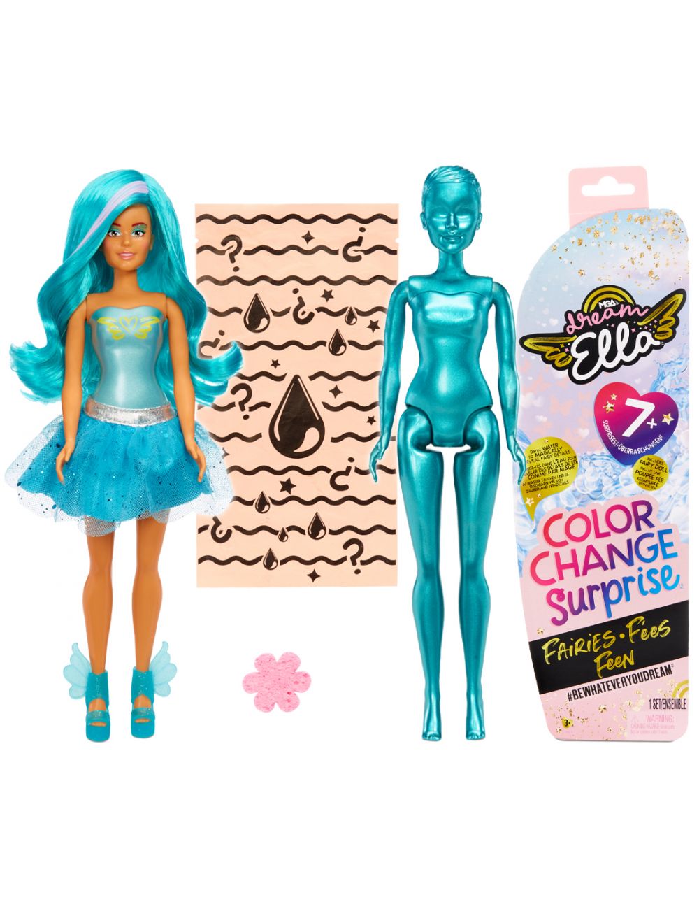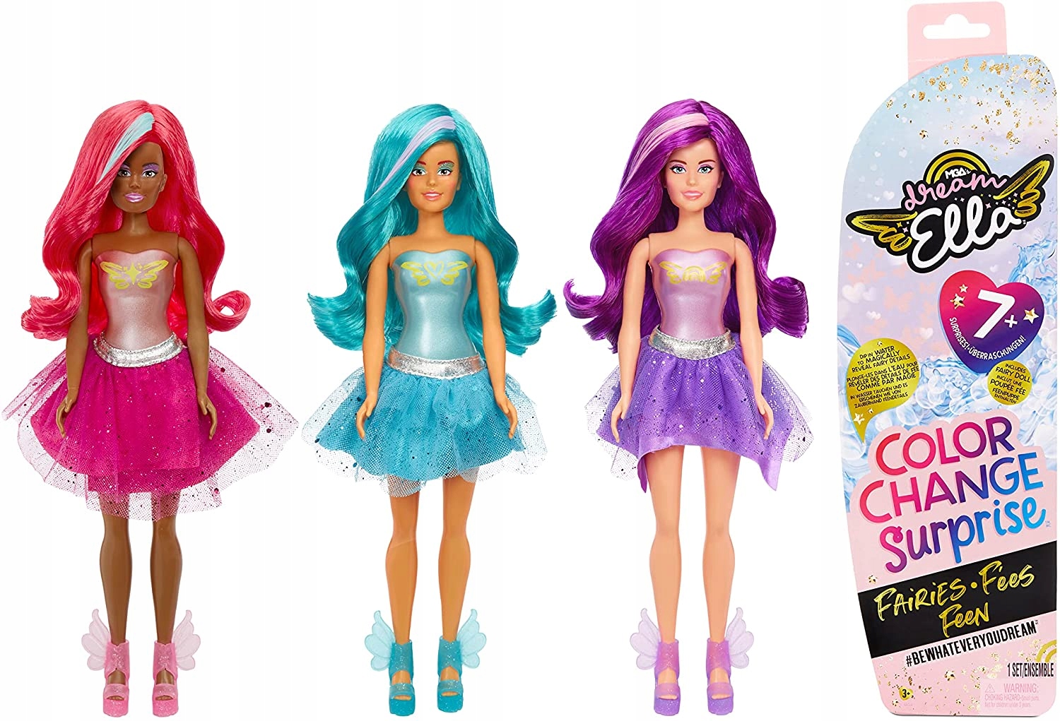 FAIRIES COLOR CHANGE: MGA Dream Ella Color Change Surprise Fairies Fashion Dolls подарують розпаковку, повну сюрпризів! Кожен пакет містить модну ляльку, але зовнішній вигляд кожної ляльки залишається таємницею, доки її не розкриють у грі зі зміною кольору.