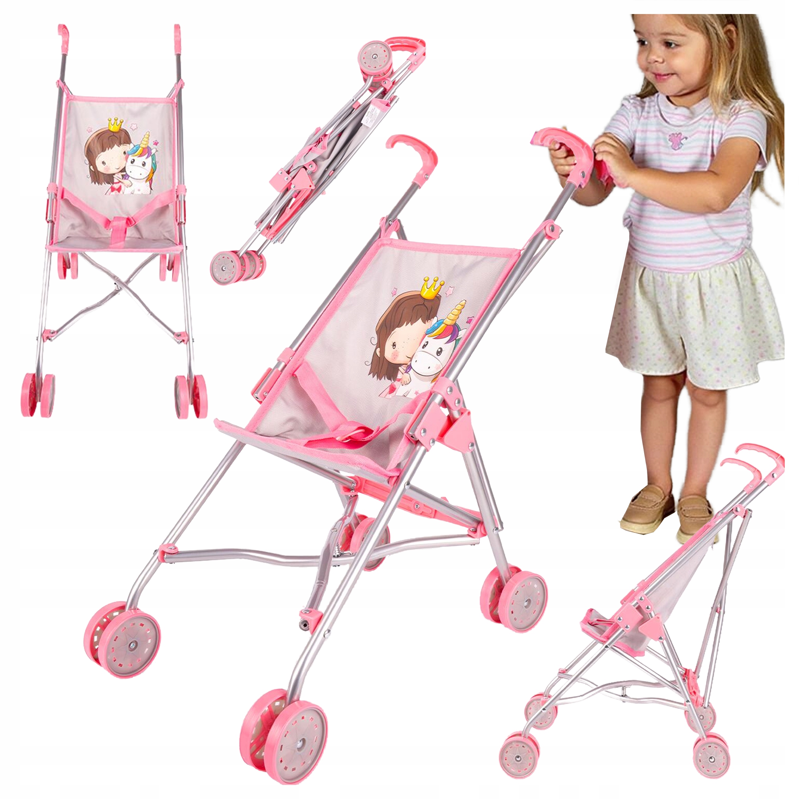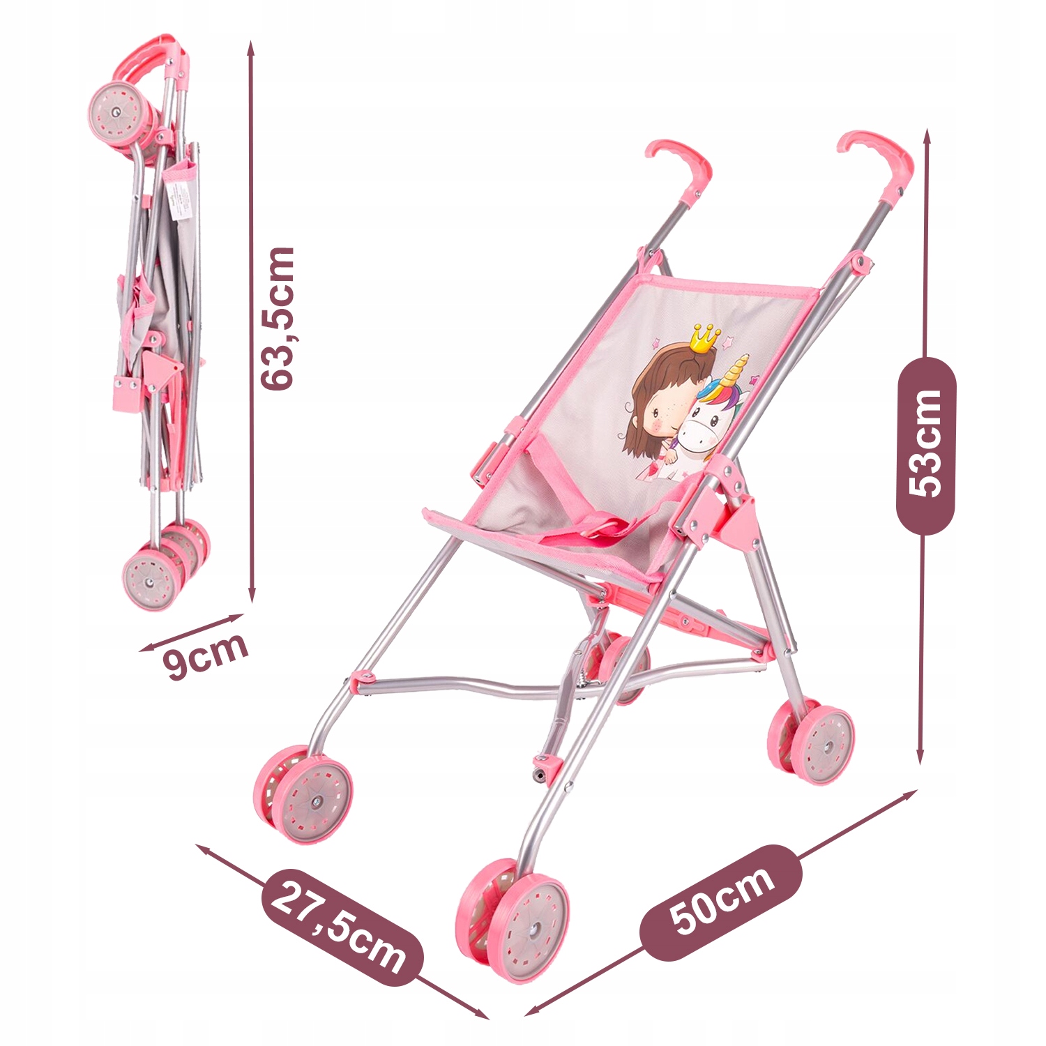 Ця чарівна коляска ляльки з мотивом принцеси та єдинорога -це поєднання феєрського стилю з практичними функціями. Легкий, складний і зручний для ведення - ідеально підходить для гри вдома, в саду чи під час прогулянок.