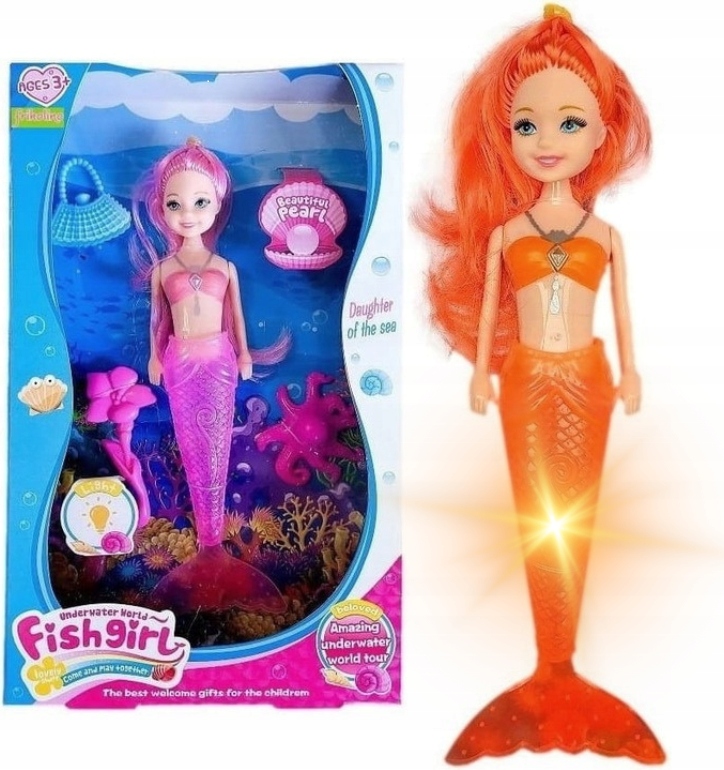 Красива лялька з русалка з сяючим хвостом та аксесуарами!