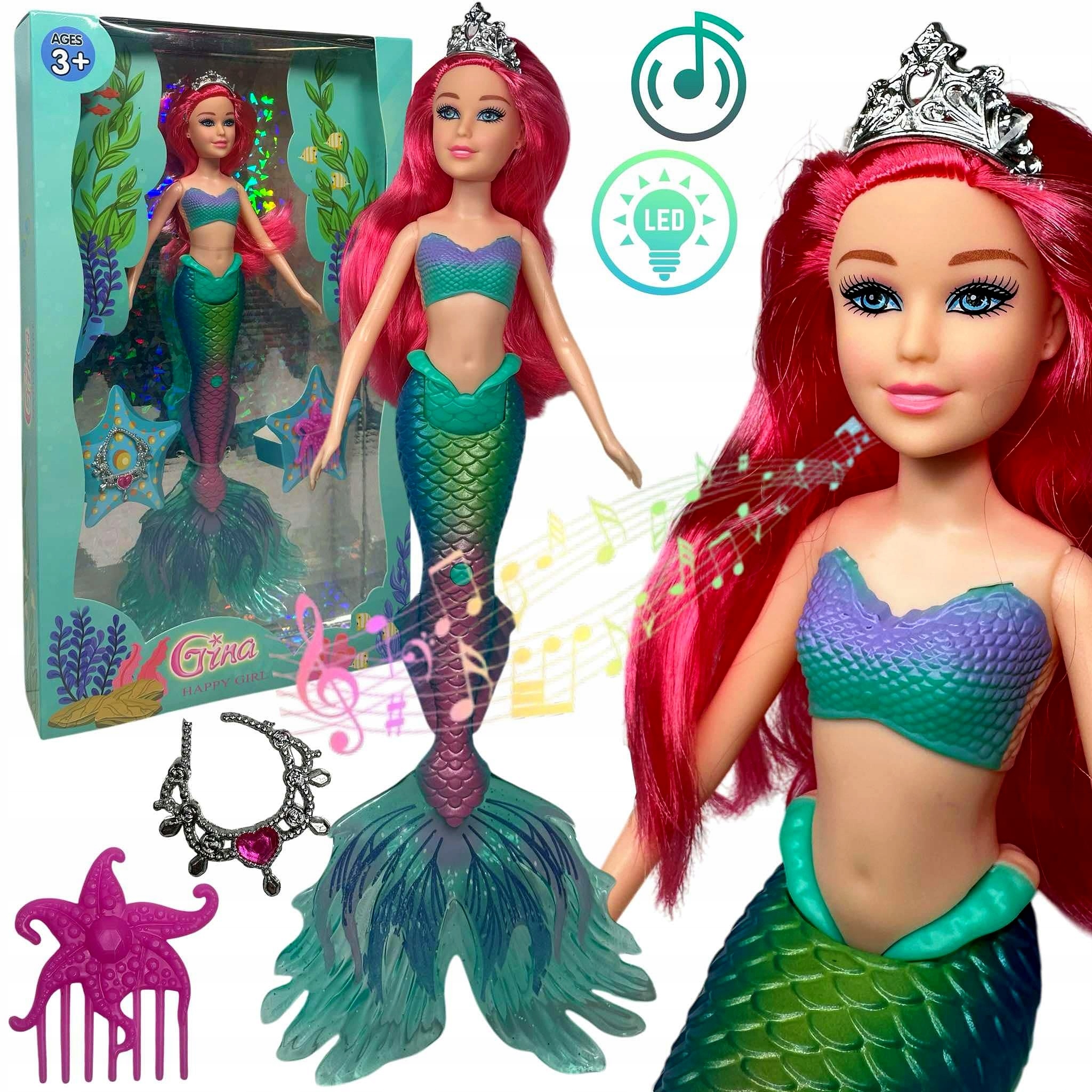 ЛЯЛЬКА МАЛЕНЬКА РУСАЛКА СПІВАЮЧА ПЛАВАЮЧА З СЯЮЧИМ ХВОСТОМ ЧЕРВОНЕ ВОЛОССЯ