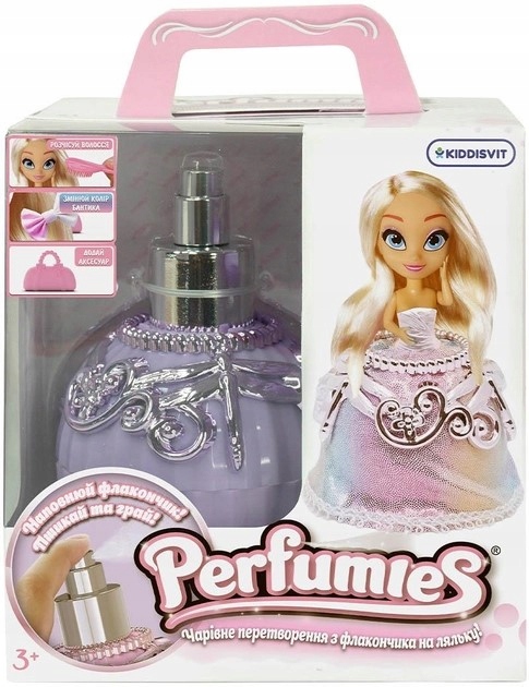 Симпатичні міні-ляльки заховані в барвистих декоративних пляшках. Блискучий декор, розміщений на пляшках, стає елементом декору сукні. Ляльки з довгим зачесаним волоссям, одягнені в бальні сукні, схожі на казкових принцес. У набір з лялькою та флаконом входять пензлик, прикраса для волосся та сумка.