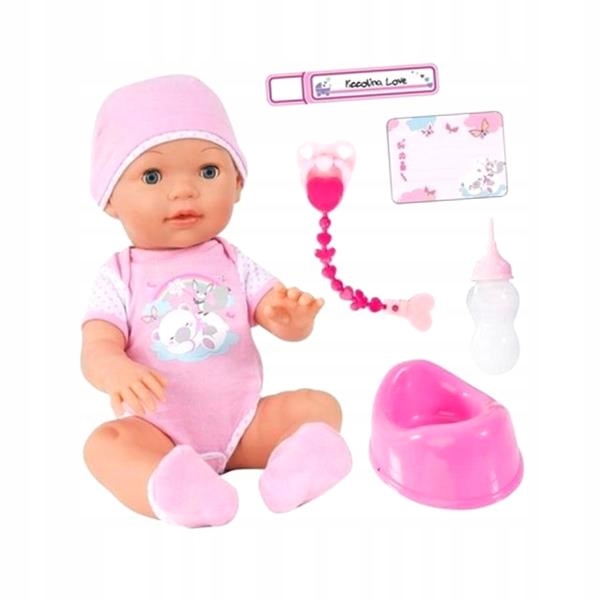 Piccolina Love - лялька 42 см з аксесуарами. Якщо натиснути на праву руку Piccolina Love, ви почуєте солодкі дитячі звуки. При цьому лялька буде красиво моргати очима. Якщо злегка стиснути ліву руку, Piccolina Love закриє очі і засне. Ще раз натисніть її ліву руку, і Піколіна Лав щасливо прокинеться. Під час годування Piccolina Love ворушить ротом і цмокає. Якщо він наповнений водою, просто натисніть на її животик, і вона помочиться на горщик. Piccolina Love сміється і хихикає. Функції ляльки пропонують можливість двох режимів гри. У кожному режимі відтворення можна почути різні звуки дитини (режим відтворення 1: звуки дитини без плачу, режим відтворення 2: звуки дитини).