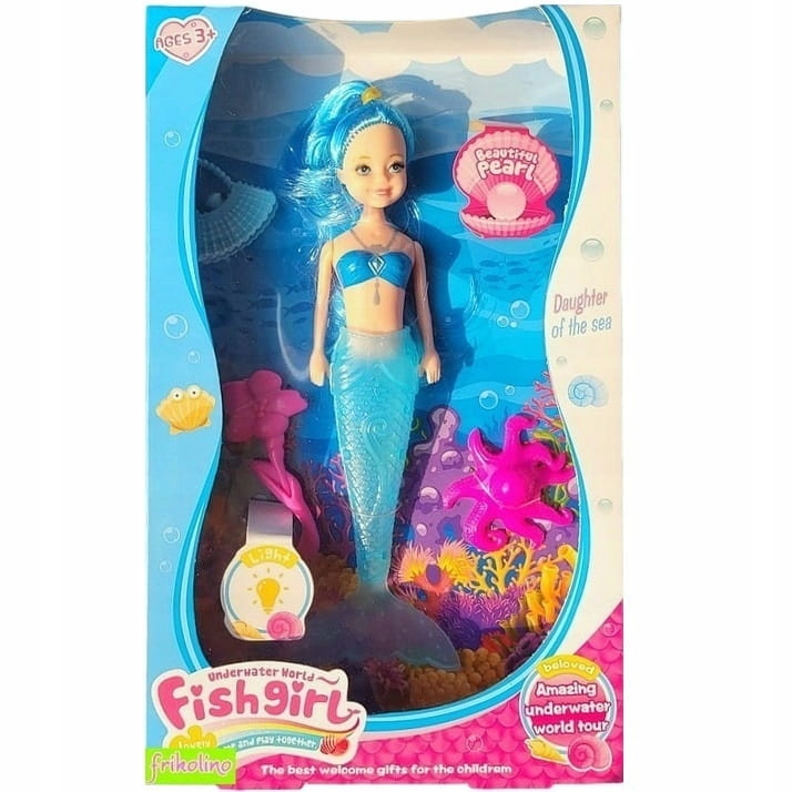 Красива лялька з русалка з сяючим хвостом та аксесуарами!