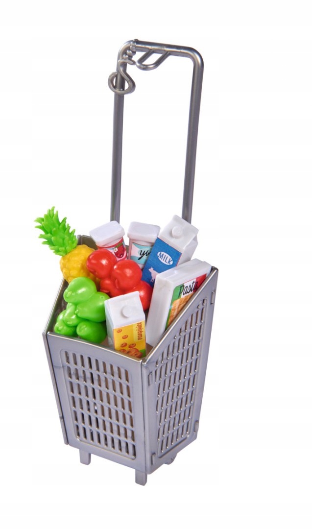 Steffi робить покупки в супермаркеті, обладнаному касовим апаратом, кошиком і багатьма продуктами харчування, 29 см, 3л