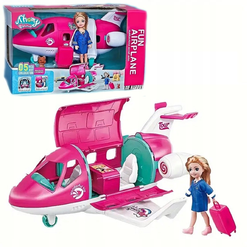 Іграшковий літак: сучасний іграшковий літак із відкритою палубою, що додає реалізму та інтерактивності до гра. Діти можуть відкривати та закривати колоду, розміщувати ляльку та її собаку на пасажирських сидіннях і перевозити багаж.