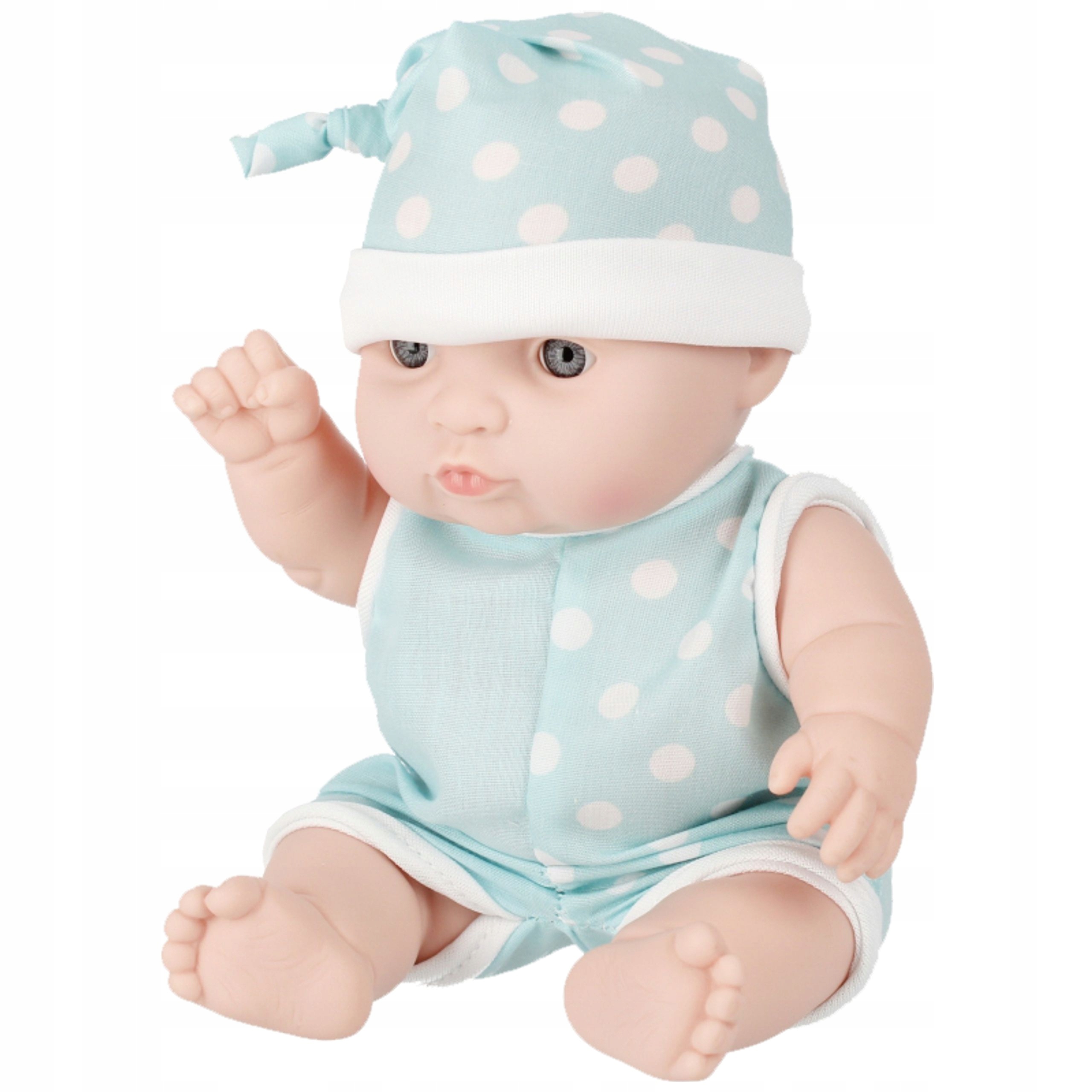 - У набір входить: пупс 20 см у сукні та шапочці. Виріб виготовлено з пластику та матеріалу.