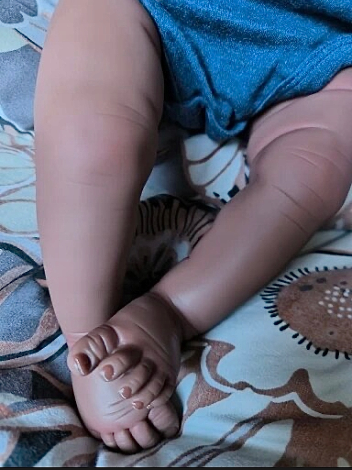 Сіліконова лялька з ручним розписом. Силіконові руки, ніжки та голова з нанесеними відбитками пальців, волосками, рум'янцями та всіма деталями, які є у живого новонародженого. Животик з м'якої тканини.