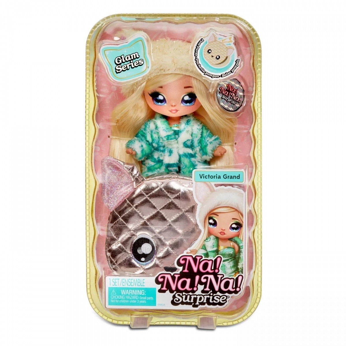 Ні! на! на! Surprise Glam Series - це сюрприз 2 в 1 - м'яка модна лялька та колекційна сумка з помпоном у формі голови тварини! Серія glam має привабливі металеві тканини на модній сумці, яка має зручну кліпсу для кріплення до рюкзака чи сумочки. на! на! на! Сюрприз - це перша в історії м'яка, зручна лялька з надрукованим обличчям і модними деталями. Тепер у вікні, щоб показати всі деталі якості. Зібрати їх усіх стане легше, ніж будь-коли!