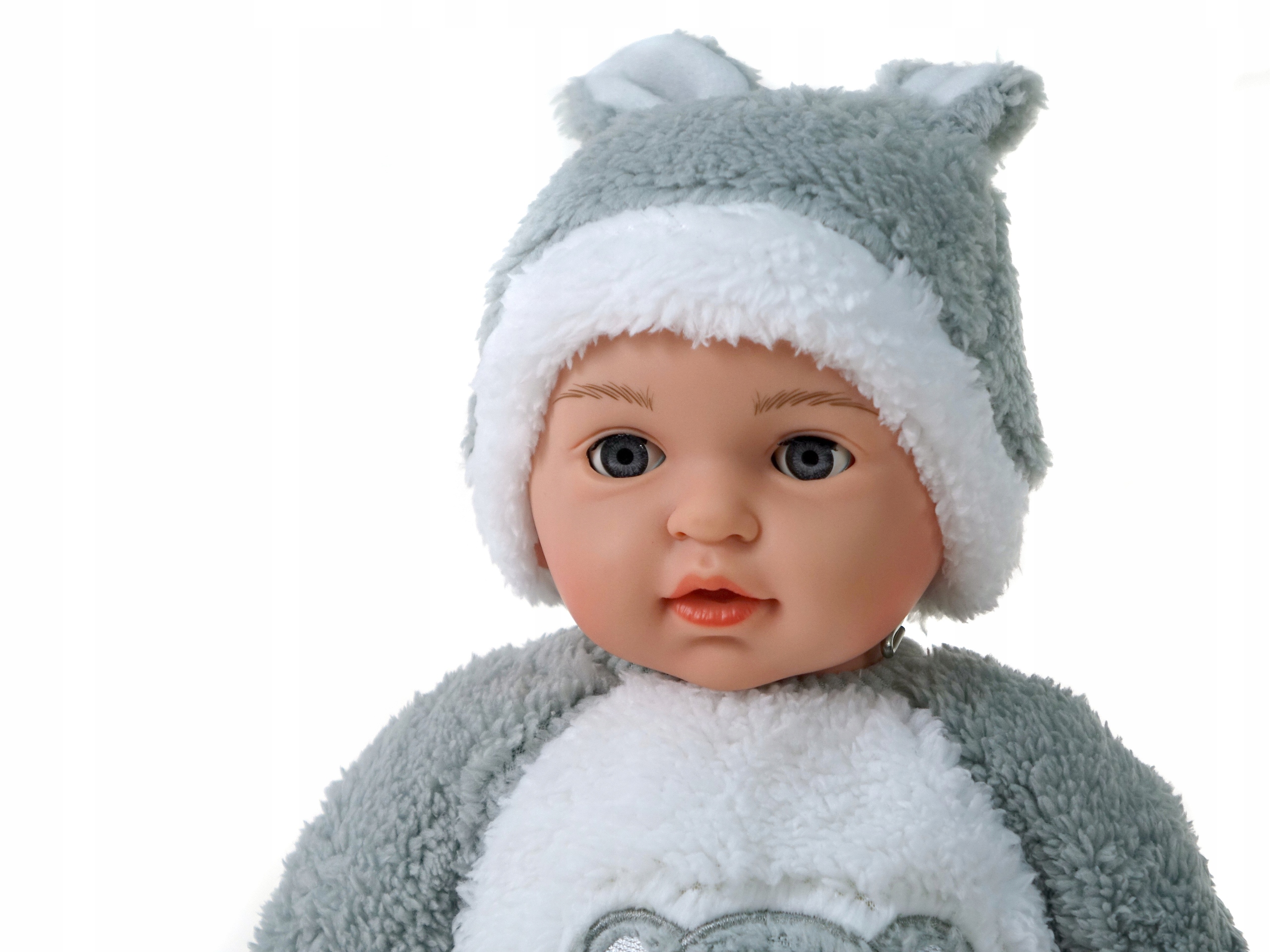 Лялька одягнена в красивий плюшевий костюм, який можна знімати і одягати. Має соску, що робить розвагу ще привабливішою.