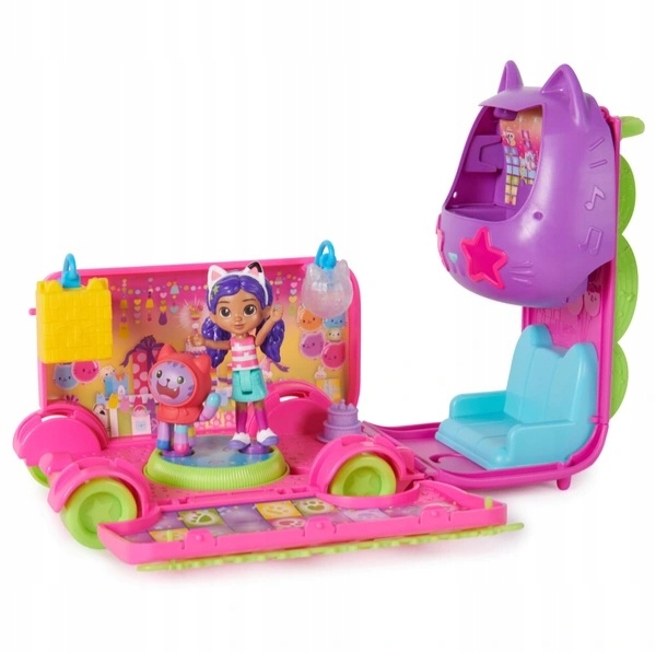 Вміст: 1x Party Bus, 1x Gabby Figure, 1x DJ Catnip Figure, 1x Piñata, 1x Doll House Surprise Box ляльки, 3x аксесуари та 2x іграшки-сюрпризи