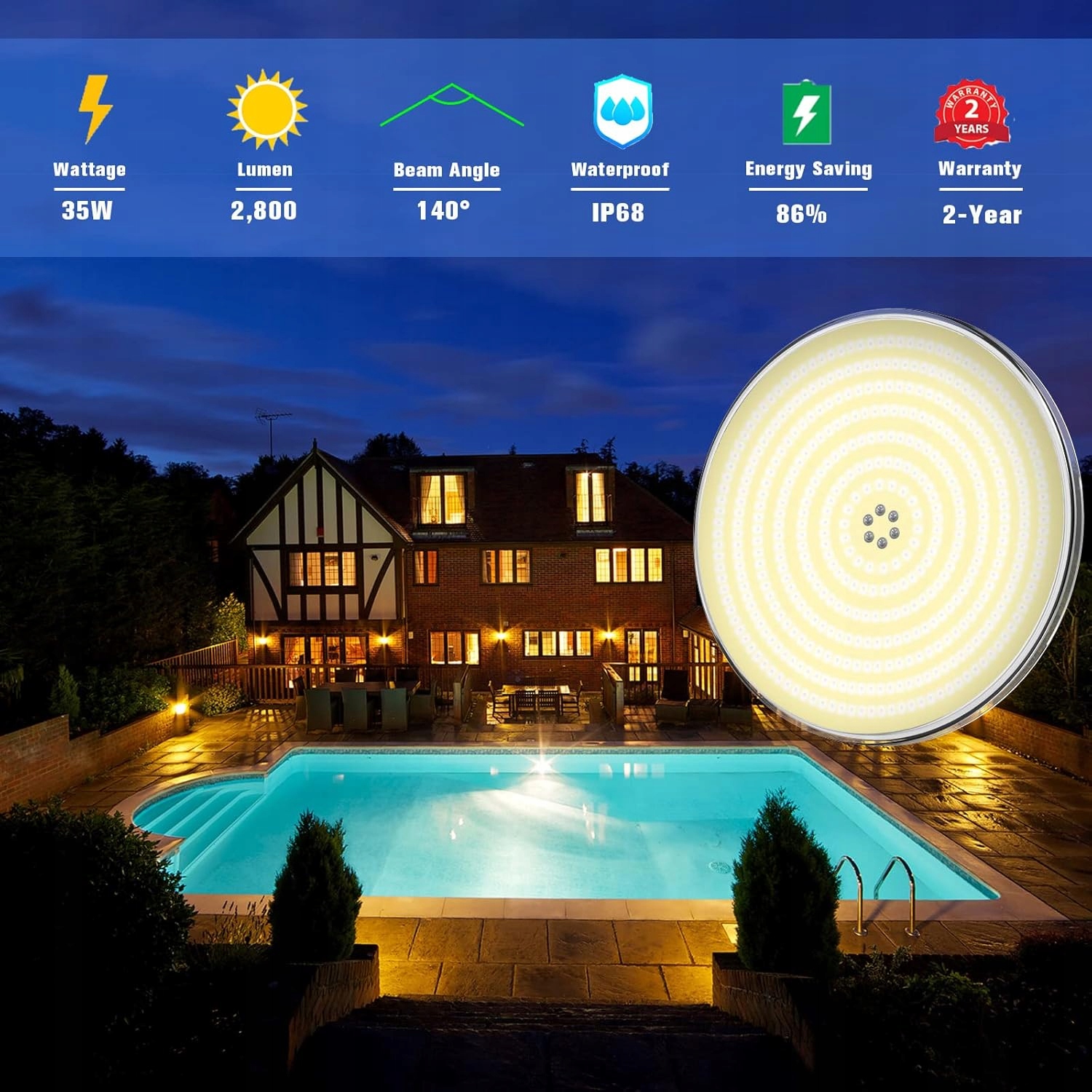 Lylmle світлодіодний басейн світло PAR56 35W IP68 2800LM 12V 3000K ВІЛЬКИЙ БІЛИЙ