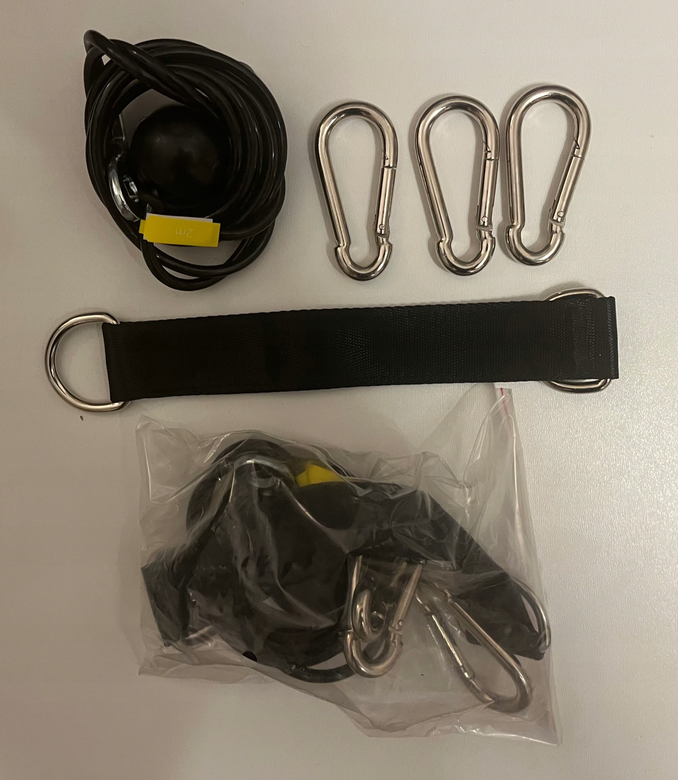 Набір Lyndwinнадзвичайно міцний. В основі конструкції лежать міцні сталеві троси і карабіни з нержавіючої сталі, що забезпечує стабільність і безпеку під час підняття ваги до 130 кг.