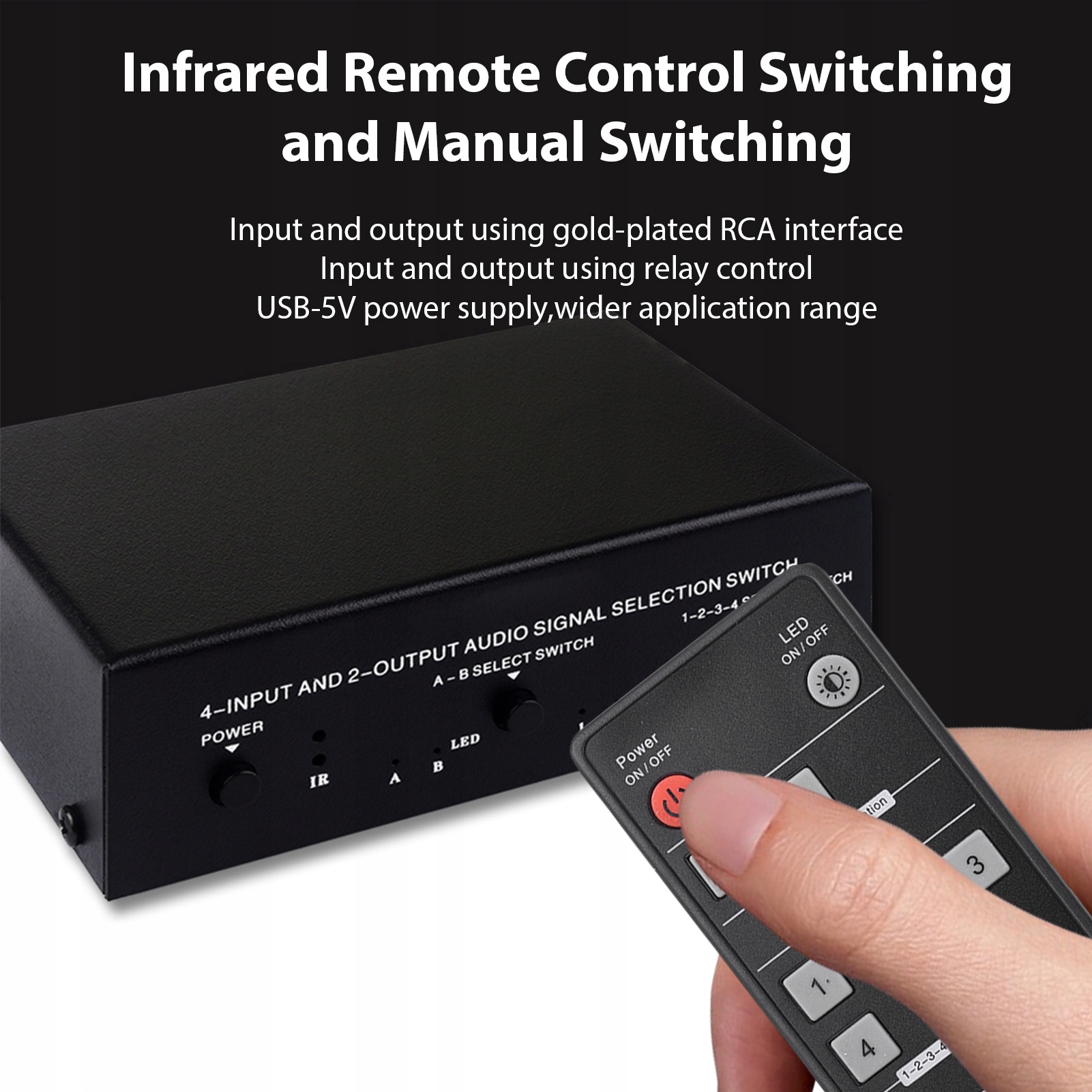 2. Використовуючи без зусиль з віддаленим контролером: оснащений зручною функцією дистанційного керування пультом дистанційного контролера, наш компонентний перемикач дозволяє перемикатися без звуку без будь -якого звуку, забезпечуючи безперебійні відчуття прослуховування, незалежно від того, перемикаючись між джерелами звуку вручну чи віддалено.