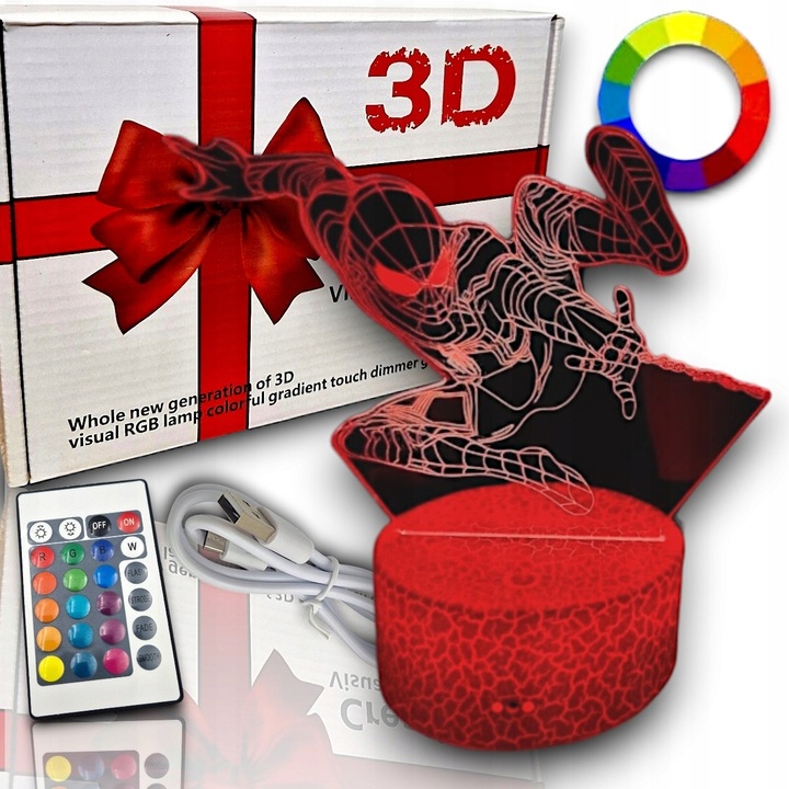 ЛЮДИНА-ПАВУК 3D LED НІЧНИК ДЛЯ СТОЛУ RGB USB ПУЛЬТ ДИСТАНЦІЙНОГО КЕРУВАННЯ ПОДАРУНОК
