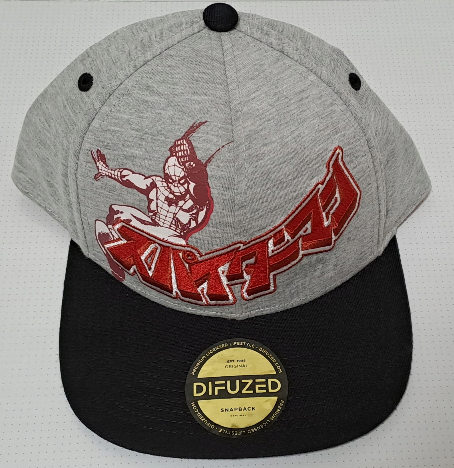 Хто любить простий дизайн, вітатиме капелюх з чоловіком - павуком. Капелюх має класичну застібку, обробка всередині червона. Зовні капелюх сірий, а дах - чорний.
