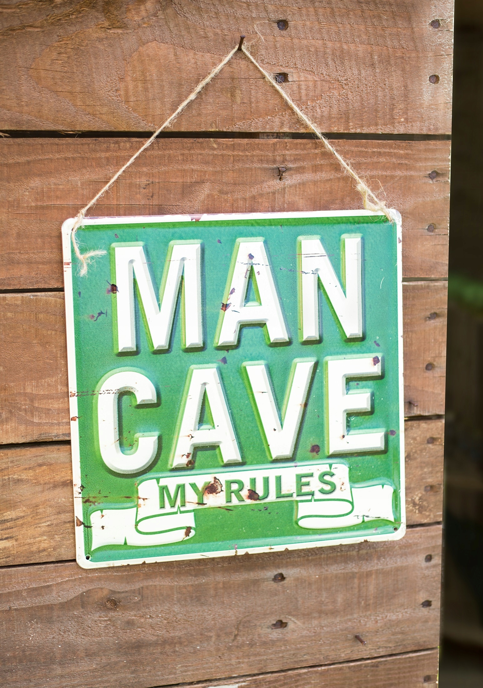 пресована, двоколірна металева пластина "Man Cave, мої правила", щоб повісити на стіну.