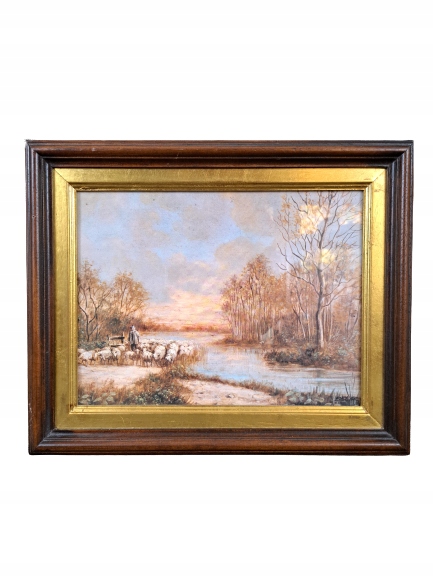 ЛЮДИНА З ОТАРОЮ БАРАНІВ, КАРТИНА В РАМЦІ, ДЕРЕВ'ЯНА РАМКА