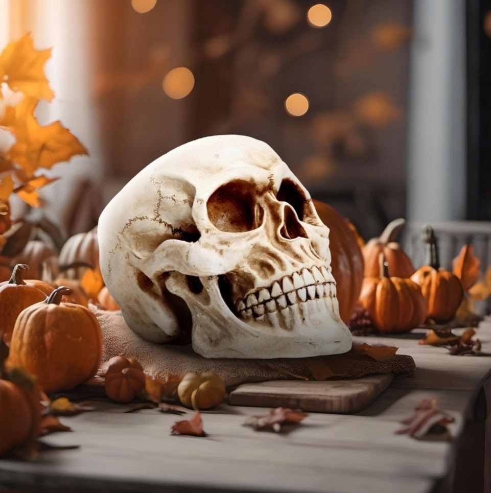 ⭐Людський череп, який дуже деталізований, стилізований, щоб виглядати старим, брудним і страшним