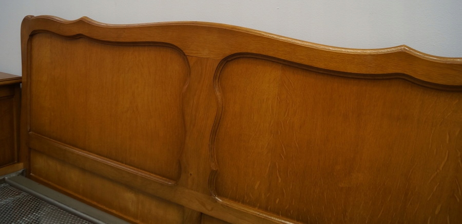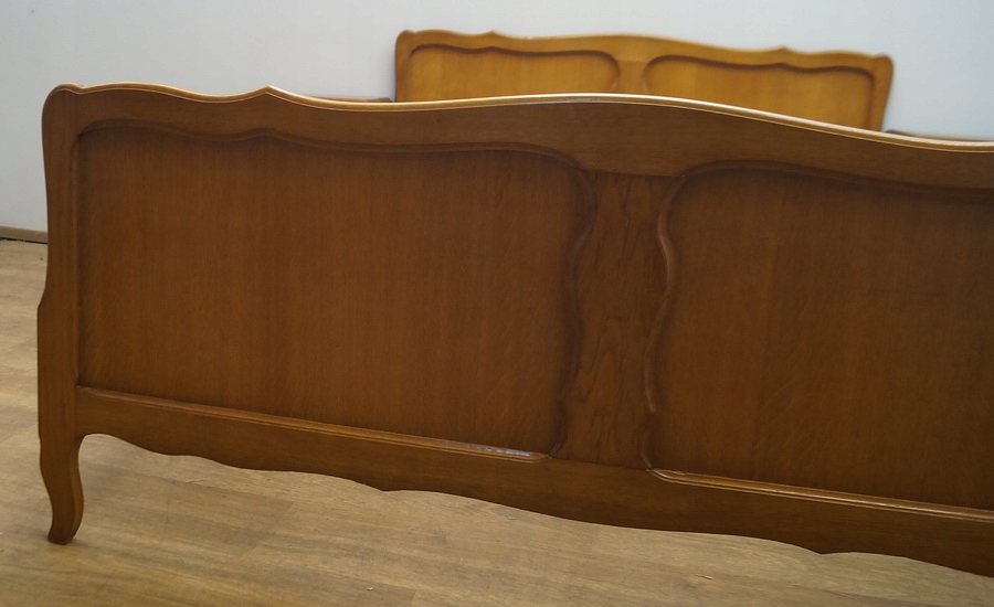 Ліжко має гарно декороване узголів'я та передню частину .