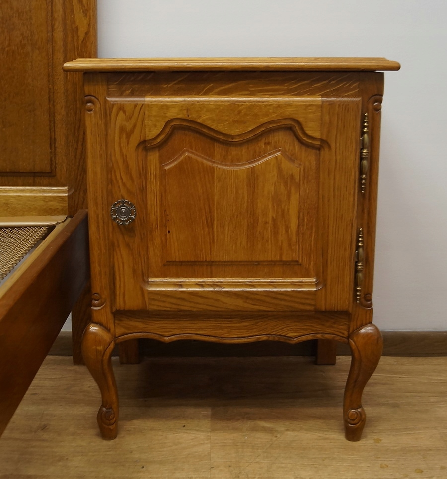 У набір входять дві чудово різьблені тумбочки та каркас ліжка.