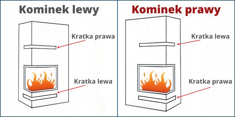 - Решіткавнизу - Лівий порт - вихід повітря спрямований вгору, завдяки тому, що решітка повертається на 180 градусів, коротша сторона знаходиться з правого боку, під боковим склом каміна.