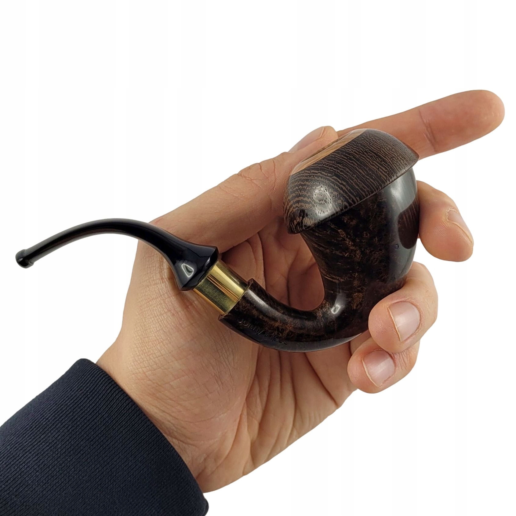 Традиційні люльки Calabash мають корпус із гарбуза, Johny Pipes розробив і вручну виготовив люльку з корпусом із шипшини. Голова виготовлена з екзотичної деревини венге, а пальник для тютюну – з шипшини. Корпус має дельринову прокладку, на яку кріпиться грибоподібна головка з топкою. Акриловий мундштук без фільтра має широке латунне кільце та встановлюється за допомогою шпильки на дерлінову втулку, розташовану в шийному гнізді, що збільшує довговічність всієї моделі. Ефектний зовнішній вигляд і точне виконання - це, безсумнівно, головні переваги цієї незвичайної труби. Велика камера під каміном гарантує солодкий і сухий дим без необхідності використання фільтрів. Шипшина з чітким зерном, пофарбована в темно-коричневий колір, захищена датською олією та воском. Камін попередньо навуглений, кришка та коробка виробника входять у вартість. Ми рекомендуємо його як цікаве доповнення до колекції або як вишуканий та унікальний подарунок у Європі.