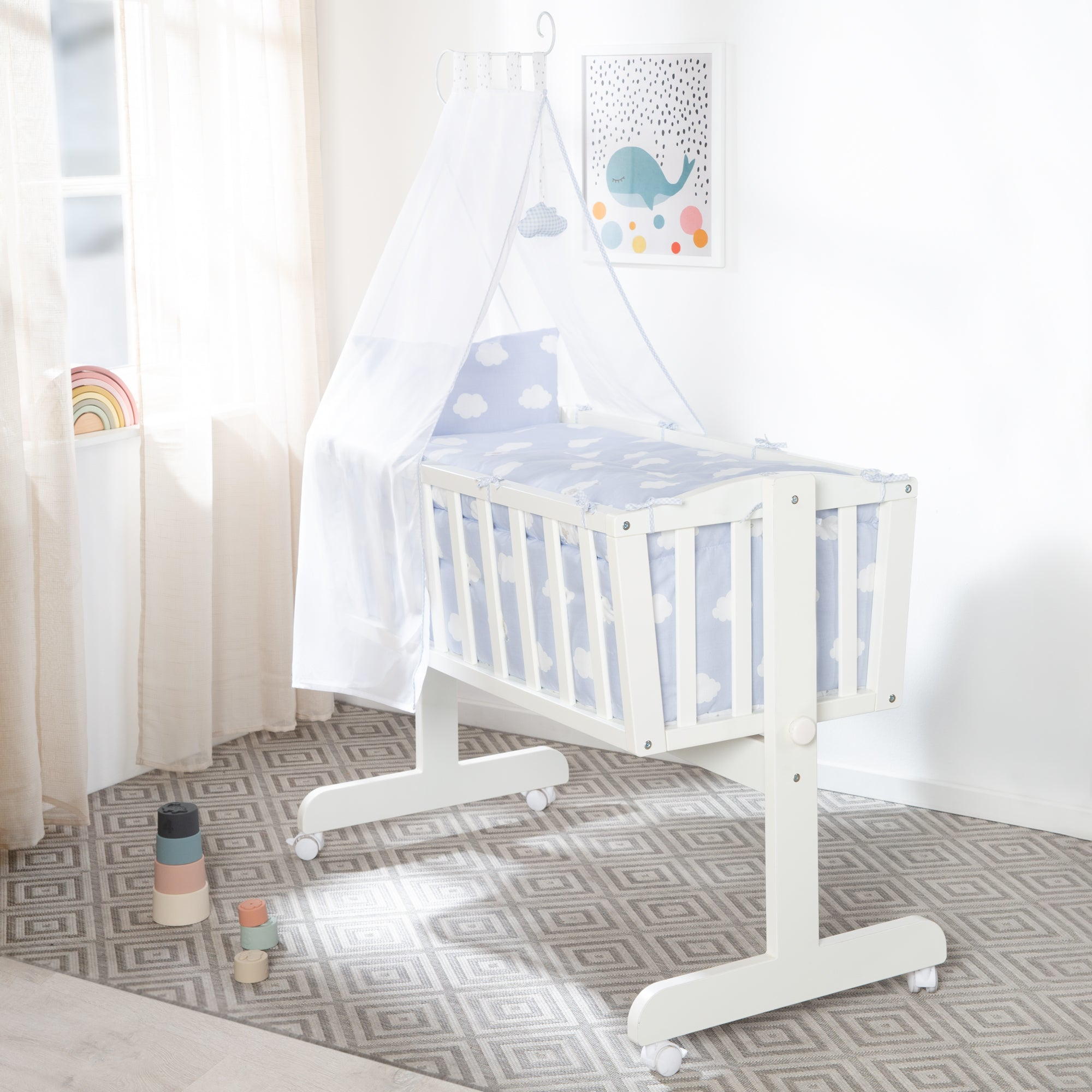 Колиска Роба з постільною білизною Blue Clouds