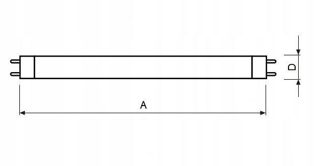 - A - видима довжина лампи (без штифтів) приблизно 438 мм