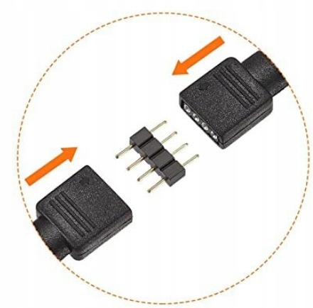 З'єднуємо обидві люмінесцентні лампи з пультом через RGB трійник як на фото нижче. ПАМ’ЯТАЙТЕ, що стрілки на роз’ємах спрямовані одна до одної, щоб забезпечити правильну роботу кольорів.