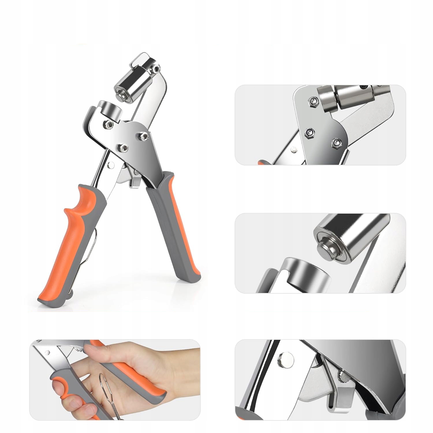 магнітна конструкція втулки дозволяє легко прикріпити люверси та шайби для регулювання положення затискача та оснащена перфорованими стовпчиками для попереднього пробивання матеріалів, які важко проникнути.
