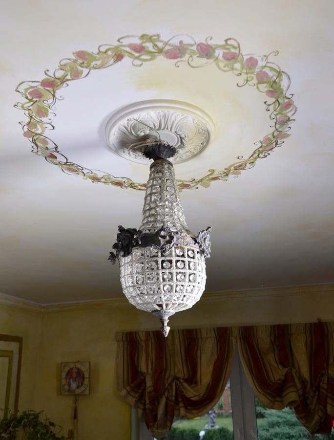 люстра - антикварна має феноменальні прикраси у вигляді кристалів. Вони додають чарівності та витонченості.
