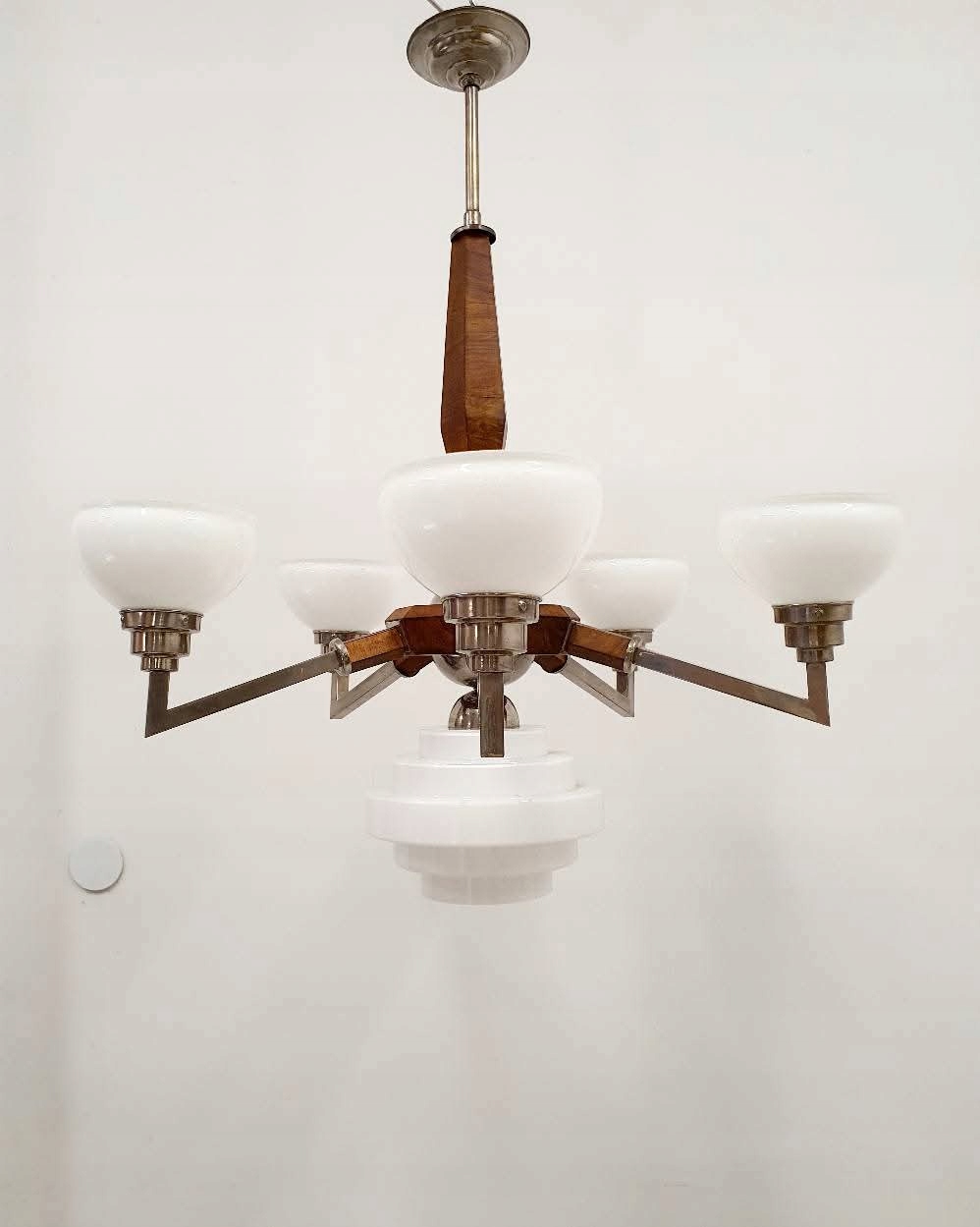 Шість -підсудна люстра з арт -деко з етикетки Юзефа Терлекі в Кракові. Тридцять років минулого століття.