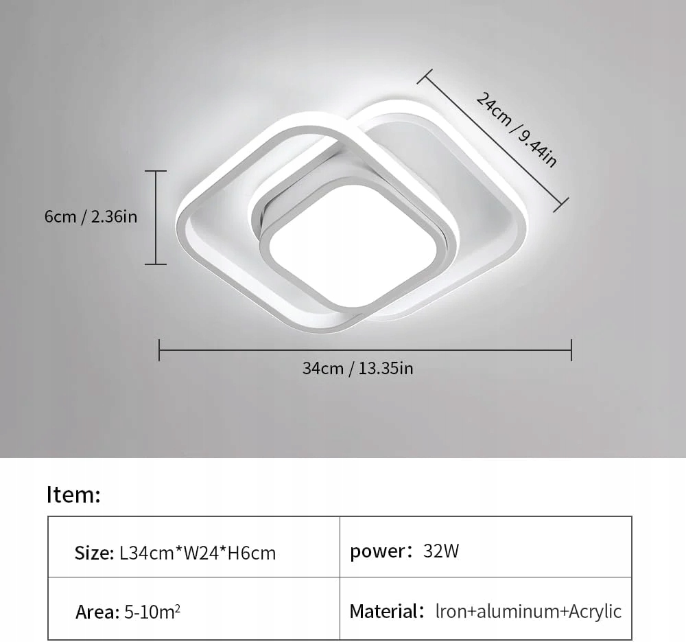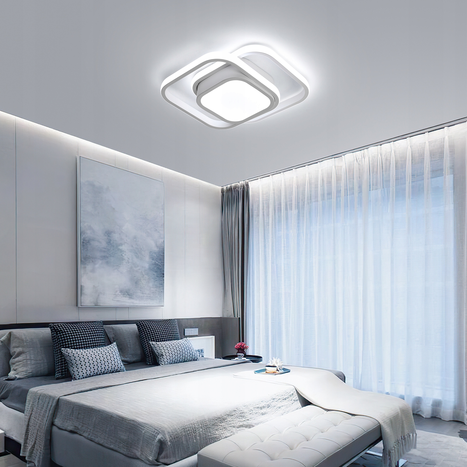 Цей світлодіодний стельовий світильник має сучасний квадратний дизайн. І два квадрати перетинаються вгору та вниз, підкреслюючи тривимірну красу стельового світильника. Він може легко та ідеально поєднуватися з різними стилями декору.