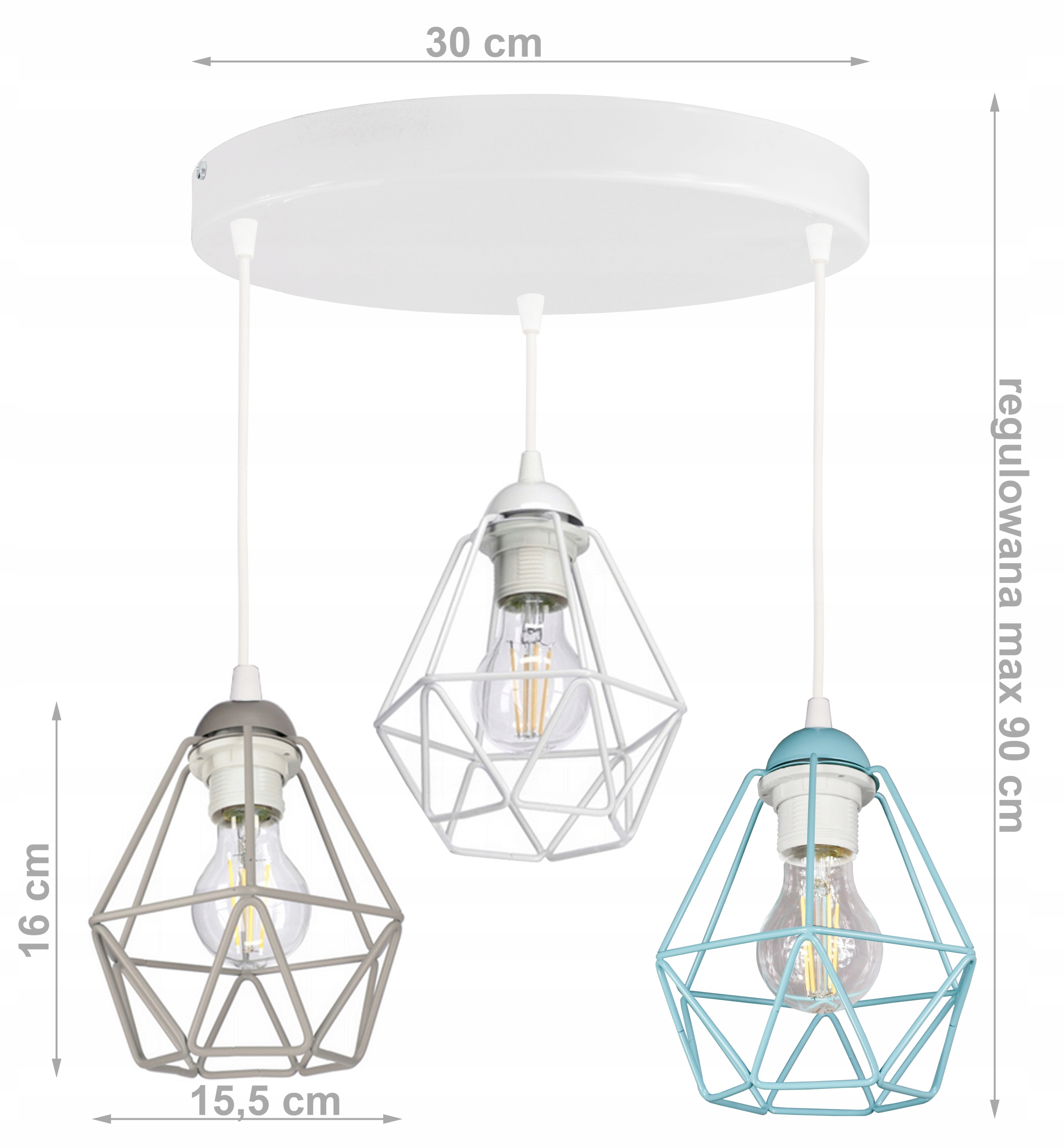 - Тип лампи: велика різьба E27, 3 x макс. 60 Вт