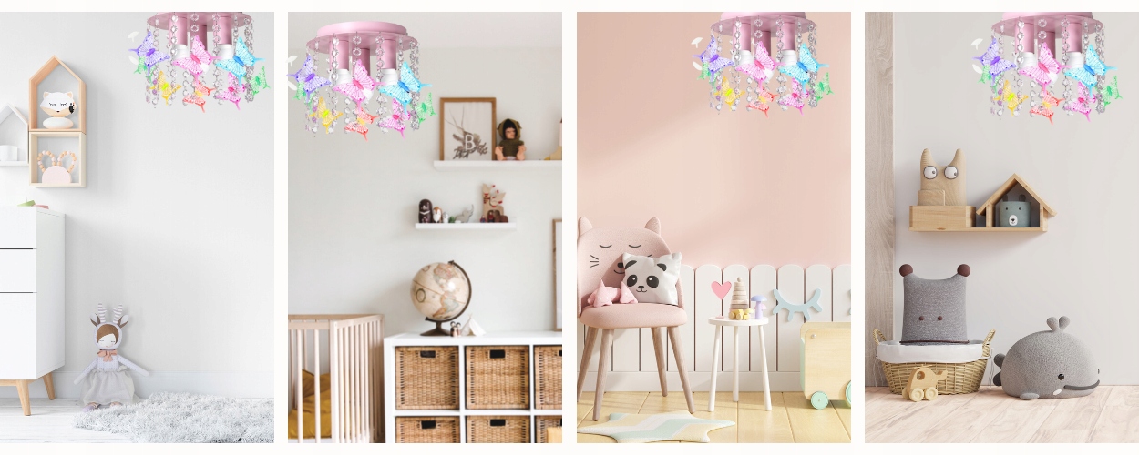 Лампа Elza — це триточкова стельова лампа, призначена для чарівних дівочих кімнат. Він чудово висвітлить всю кімнату та порадує око маленьких принцес. Він прикрашений різнокольоровими деталями у вигляді метеликів і кристалів, які додатково красиво розсіюють світло. Люстра має класичну різьбу E27, тому підходить до більшості доступних лампочок.