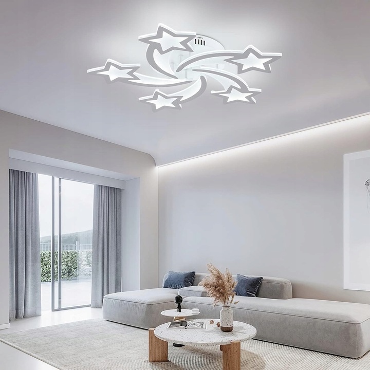ЛЮСТРА СТЕЛЯ СВІТЛОДІОДНА ЛЮСТРА ЗІРКА, БІЛИЙ, СУЧАСНИЙ, РЕГУЛЮВАННЯ ЗАТЕМНЕННЯ, ДОДАТОК ДИСТАНЦІЙНОГО ПУЛЬТУ