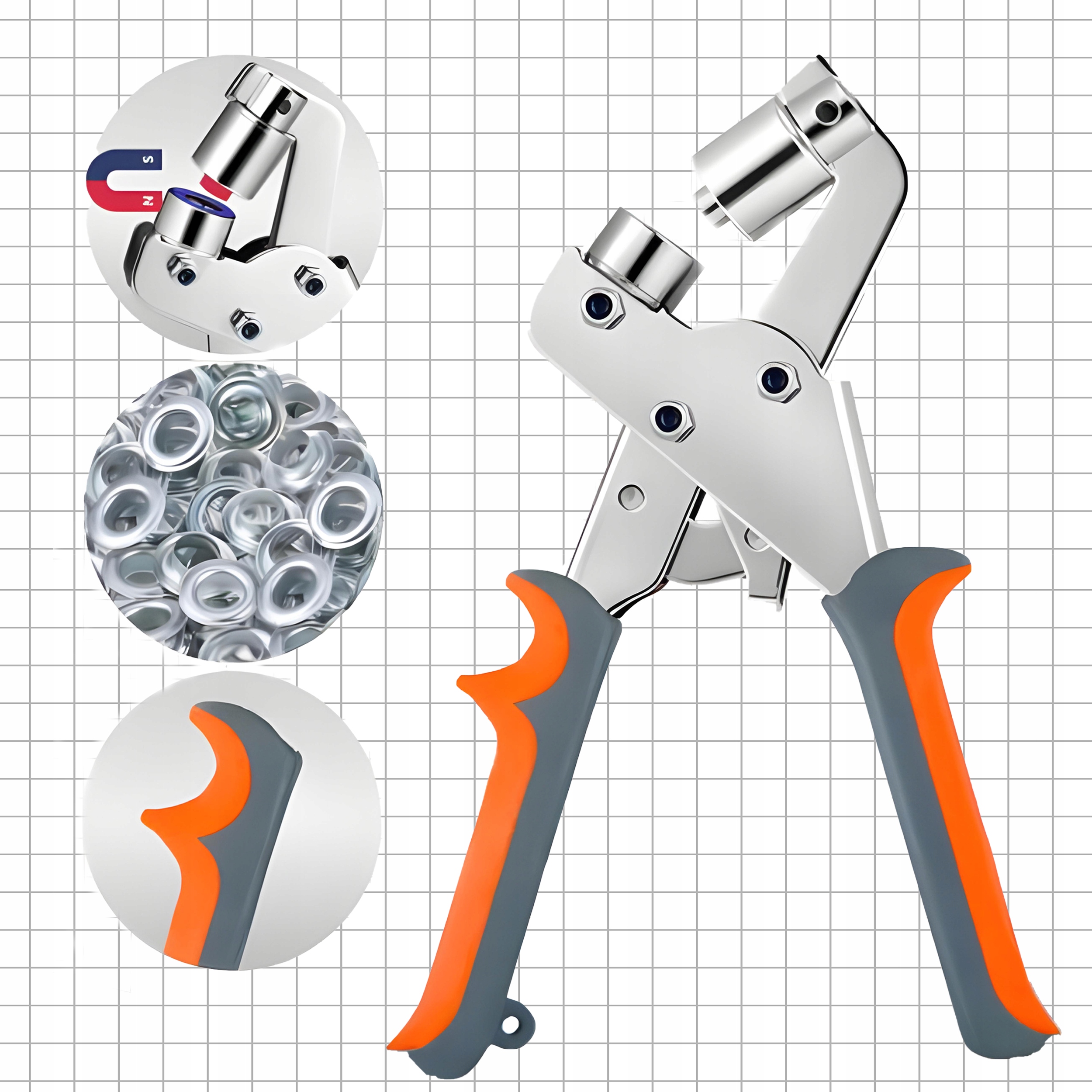 ✔️ Безпека та комфорт використання - кожна деталь інструменту розроблена, щоб зробити роботу не тільки ефективною, але й зручною. Стійка конструкція запобігає зміщенню люверс-машини під час роботи, а неслизька ручка гарантує надійне утримання навіть після тривалого використання.