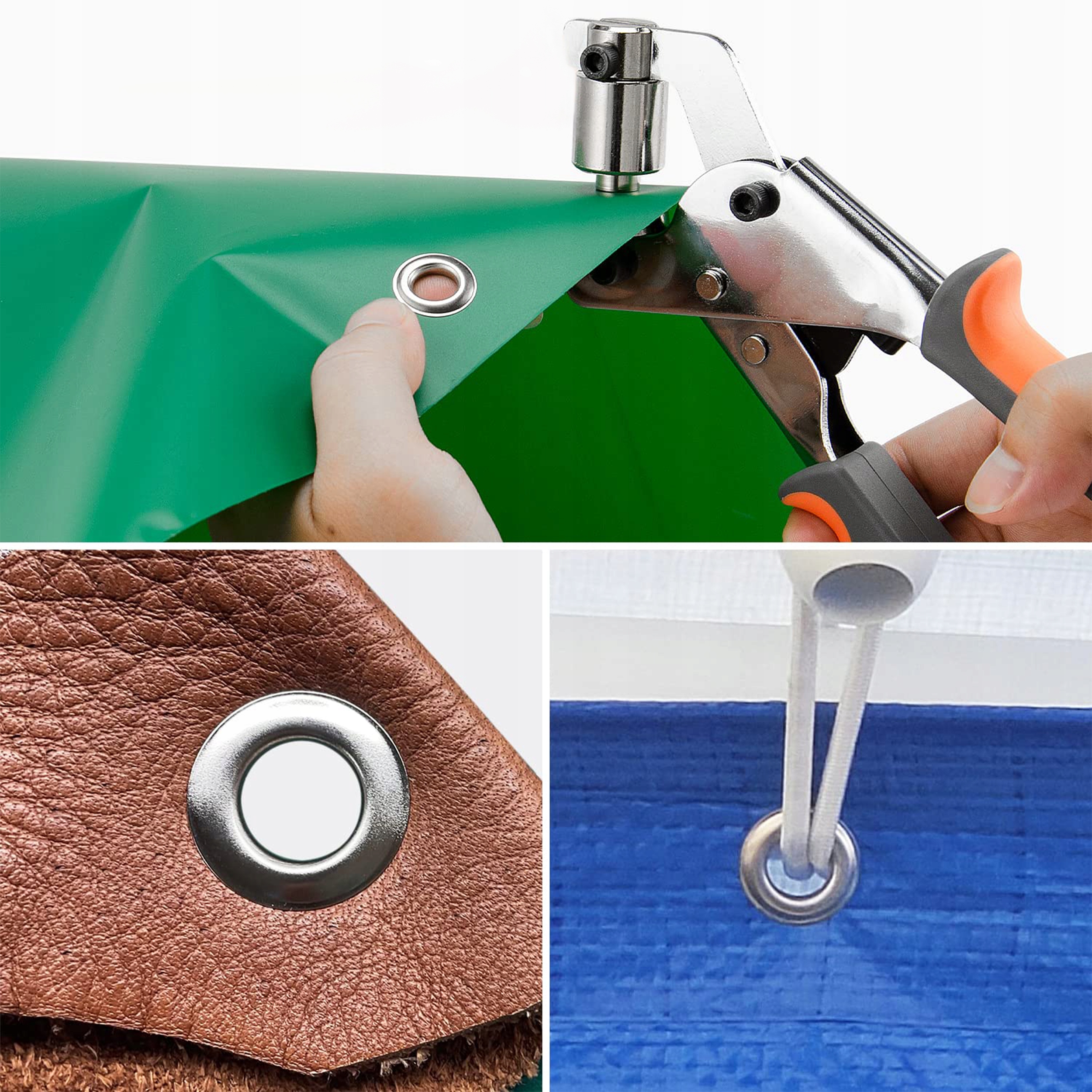 У набір входить аж 500 металевих вушок, які дозволяють почати роботу відразу після розпакування. Кожне люверс виготовлено з корозійностійкого металу, тому його можна використовувати як всередині, так і на вулиці.