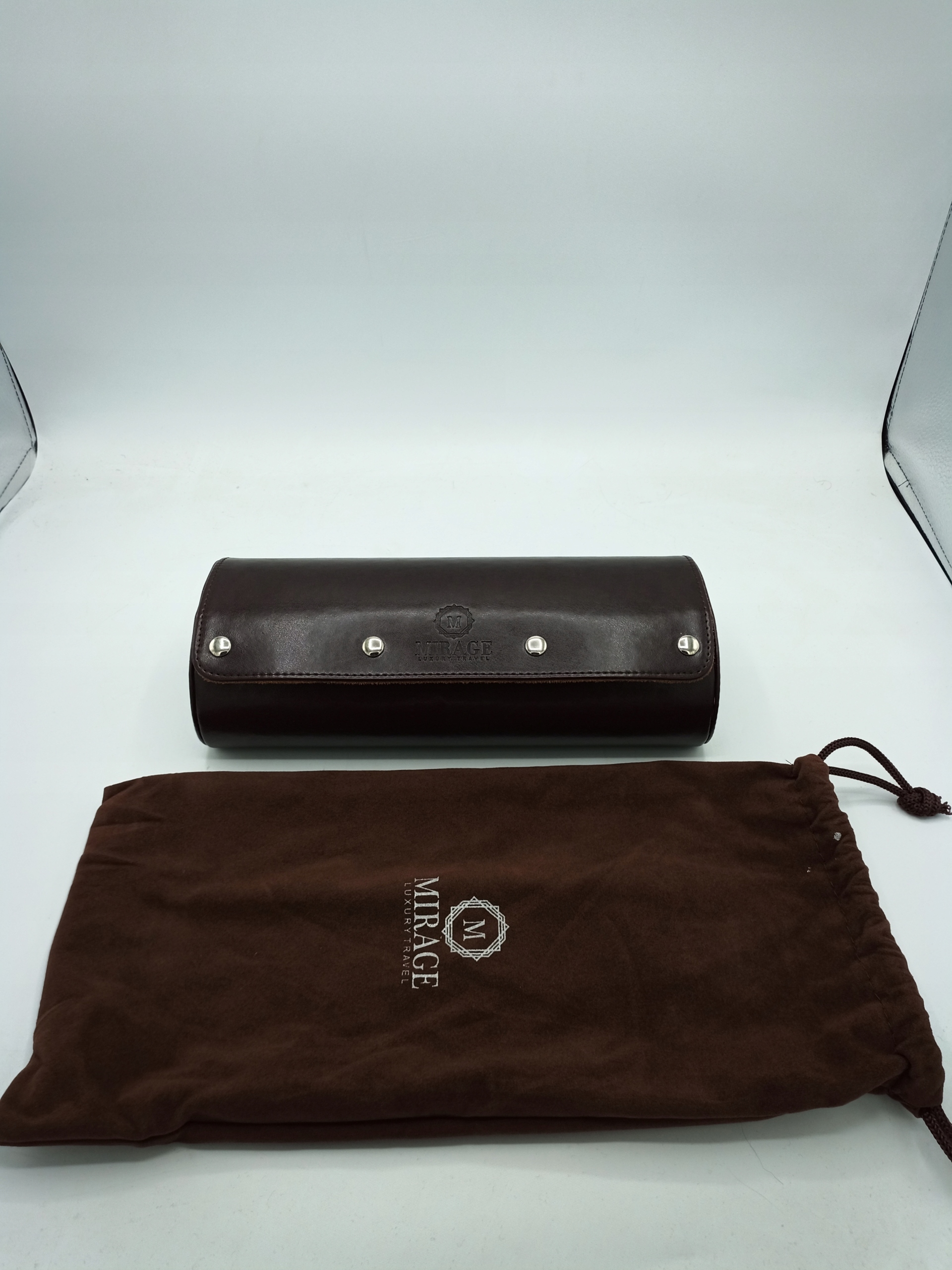 Розкішний дорожній футляр M Mirage Luxury Travel для 3 годинників — це поєднання елегантності, безпеки та функціональності. Виготовлений із високоякісної веганської шкіри кольору еспресо, він ідеально захищає та демонструє вашу колекцію годинників під час подорожі чи вдома.