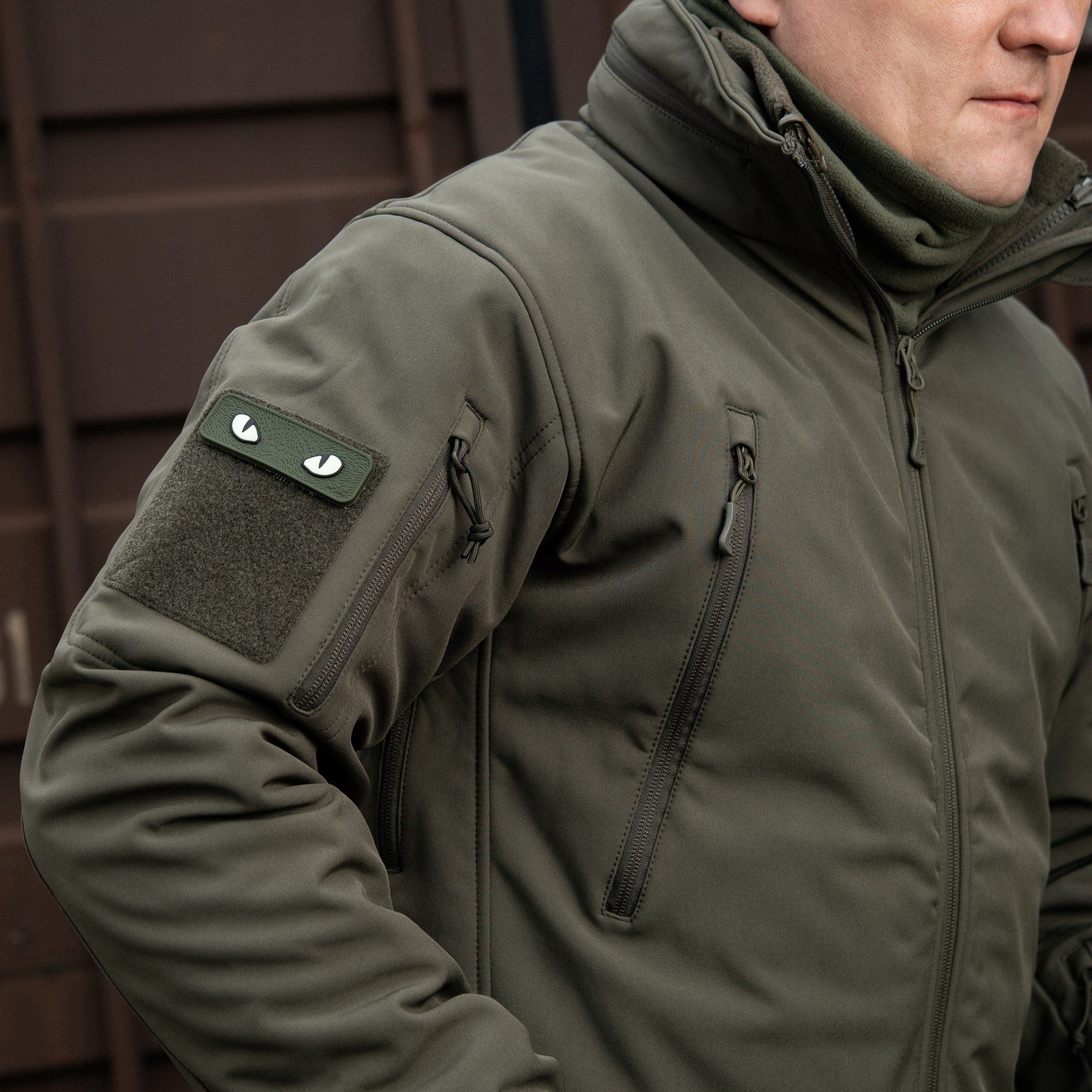 Унікальними властивостями продуктів softshell є їх мала вага та поєднання двох шарів одягу в одному. Softshell поєднує в собі зовнішній шар (для захисту від вітру та погоди) та ізоляційний внутрішній шар. Поверхня відбиває не тільки вологу, але і бруд. Крім того, м’який і обтічний матеріал робить його більш зручним у носінні.Блискавка виготовлена компанією YKK.Блискавка має високу якість і виконує свою функцію без видимих проблем.