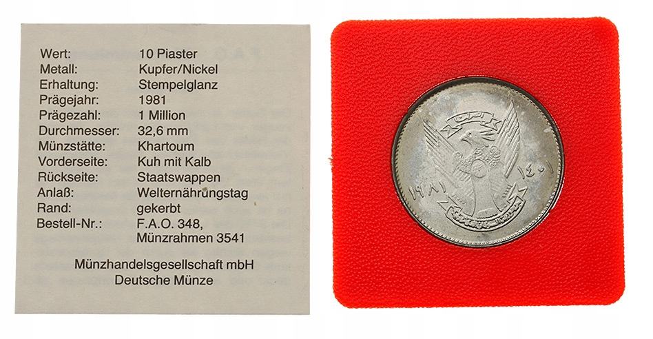 Заказывая «[M0002] Судан 10 піастрів 1981 ФАО 1 ранг» данный товар из каталога «Судан и Южный Судан» вы можете быть уверены, что после оформления заказа, доставки в Украину, вы получите именно то, что заказывали, в оговоренные сроки и европейского качества.