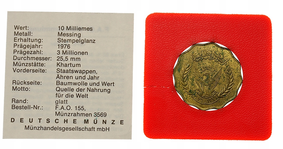 [M0008] Судан 10 мілімів 1976 FAO st.1