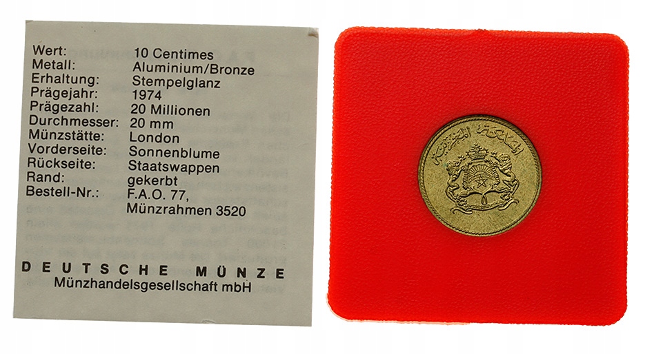 [M0109] Марокко 10 сантимів 1974 ФАО ст.1