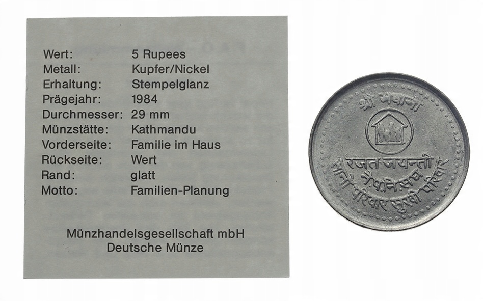 [M0128] Непал 5 рупій 1984 ФАО ст.1