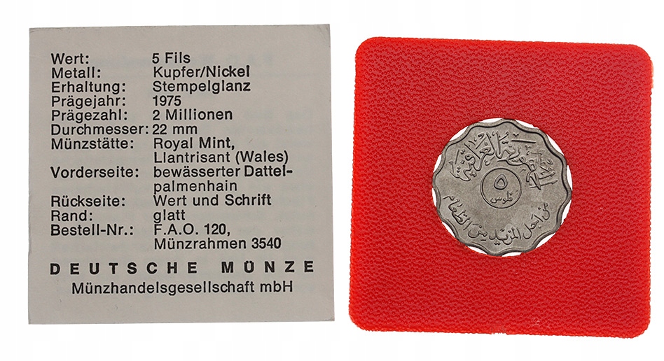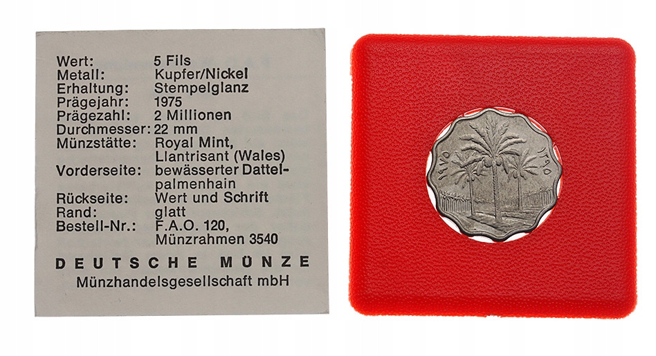 Просматривая «[M0173] Ірак 5 філсів 1975 ФАО ст.1», вы можете быть уверены, что данный товар из каталога «Ирак» будет доставлен из Польши и проверен на целостность. В цене товара, указанной на сайте, учтена доставка из Польши. Внимание!!! Товары для Евросоюза, согласно законодательству стран Евросоюза, могут отличаться упаковкой или наполнением.