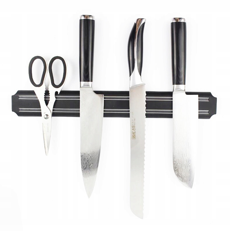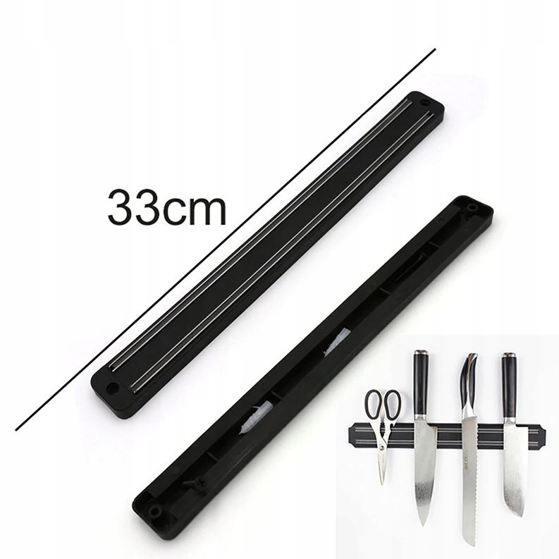 Смуга для ножів магнітна, кріпиться на стіну, довжина 33 см. Він дозволяє зручно та безпечно зберігати ножі в межах досяжності. Незамінний там, де ножі мають бути швидкодоступними. Сильний магніт забезпечує безпечне використання.