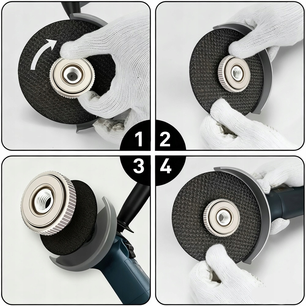 ⚡ ШВИДКІСТЬ ТА КОМФОРТ: Складання та розбирання без інструментів дозволяє замінити диск за кілька секунд. Просто затягніть його вручну — обертальна сила шліфувальної машини зробить все інше, забезпечуючи надійне замикання.