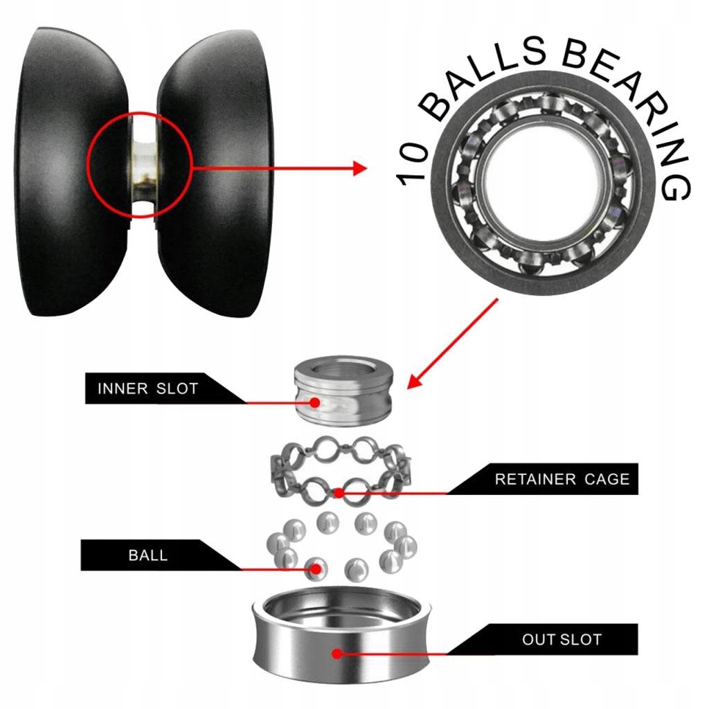 10 кулькових підшипників, внутрішня розетка, фіксація клітки, зовнішня конструкція розетки - зробіть Yoyo високою ефективністю.