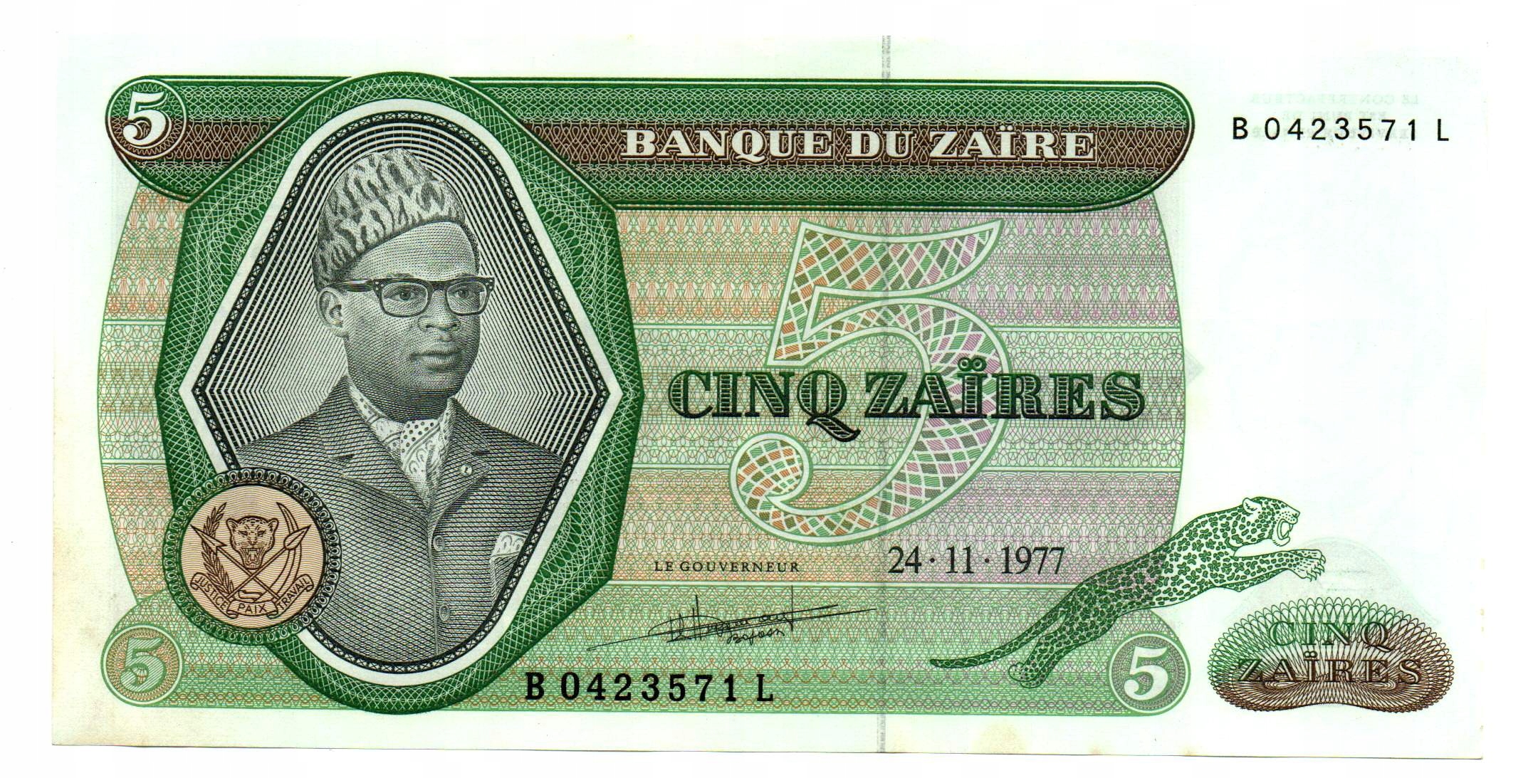[M2039] Заїр 5 заїрів 1977 р. 1-